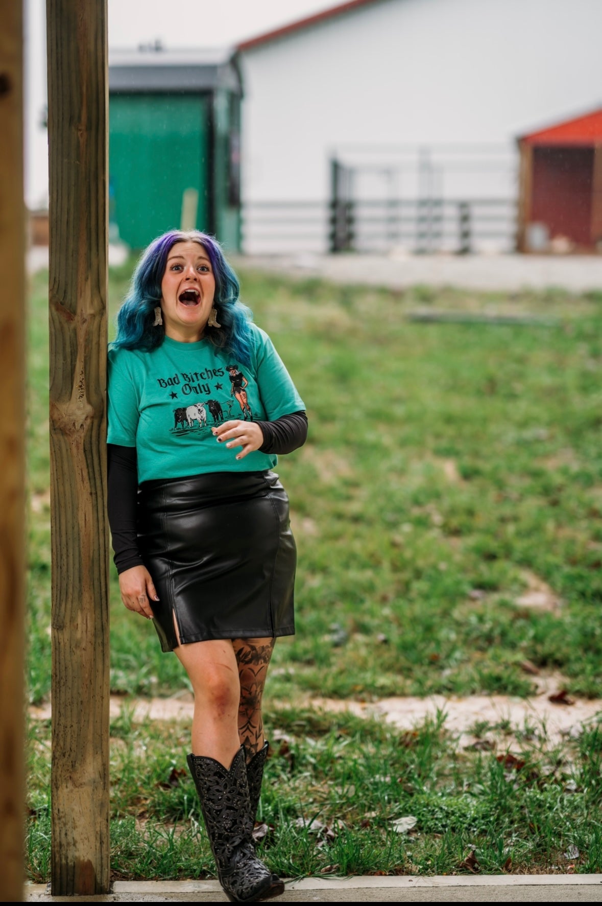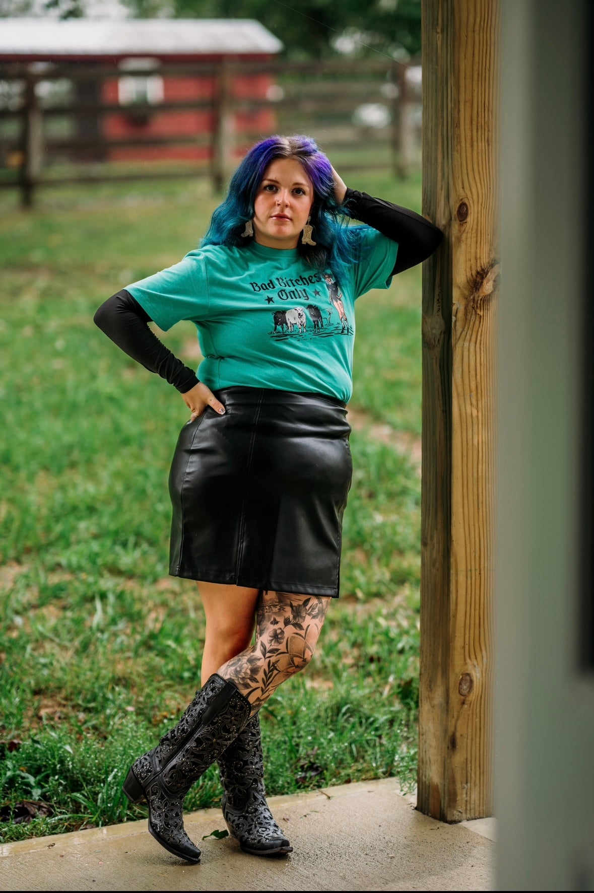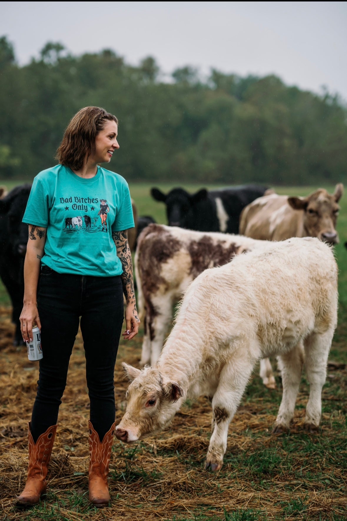 As feral friends of Cowgirl Hustle we ride with Bad Bitches Only. Could those bitches be our friends of 10+ years, our coworkers, our cats or chickens? Hell yes they can. This design has the owner, Lacie as a pinup with some of the staple favorites of her content: Snow, Oswald and Iris. These are high quality tee shirts made from premium soft-touch fabric and screen printed by a small business in Indiana. They do not shrink, and fit true to size as a unisex tee. 100% cotton. To protect the graphic, wash the shirt inside out!