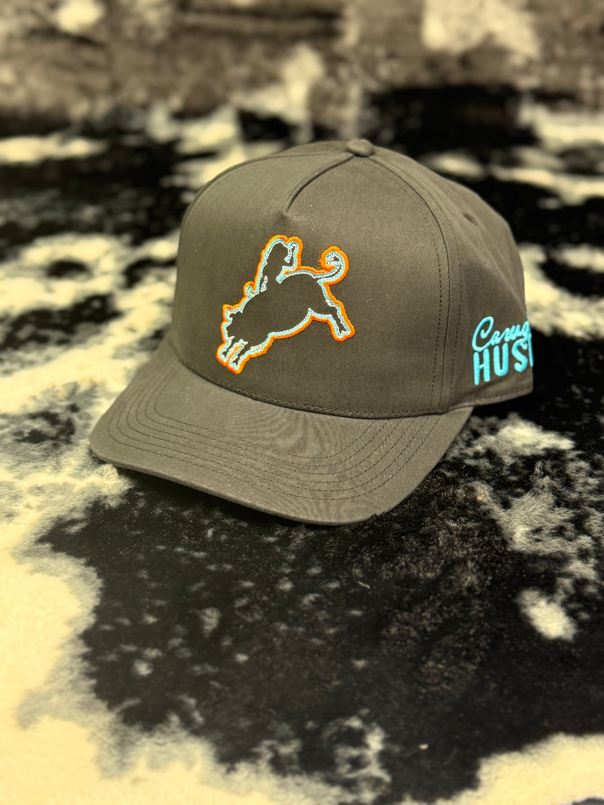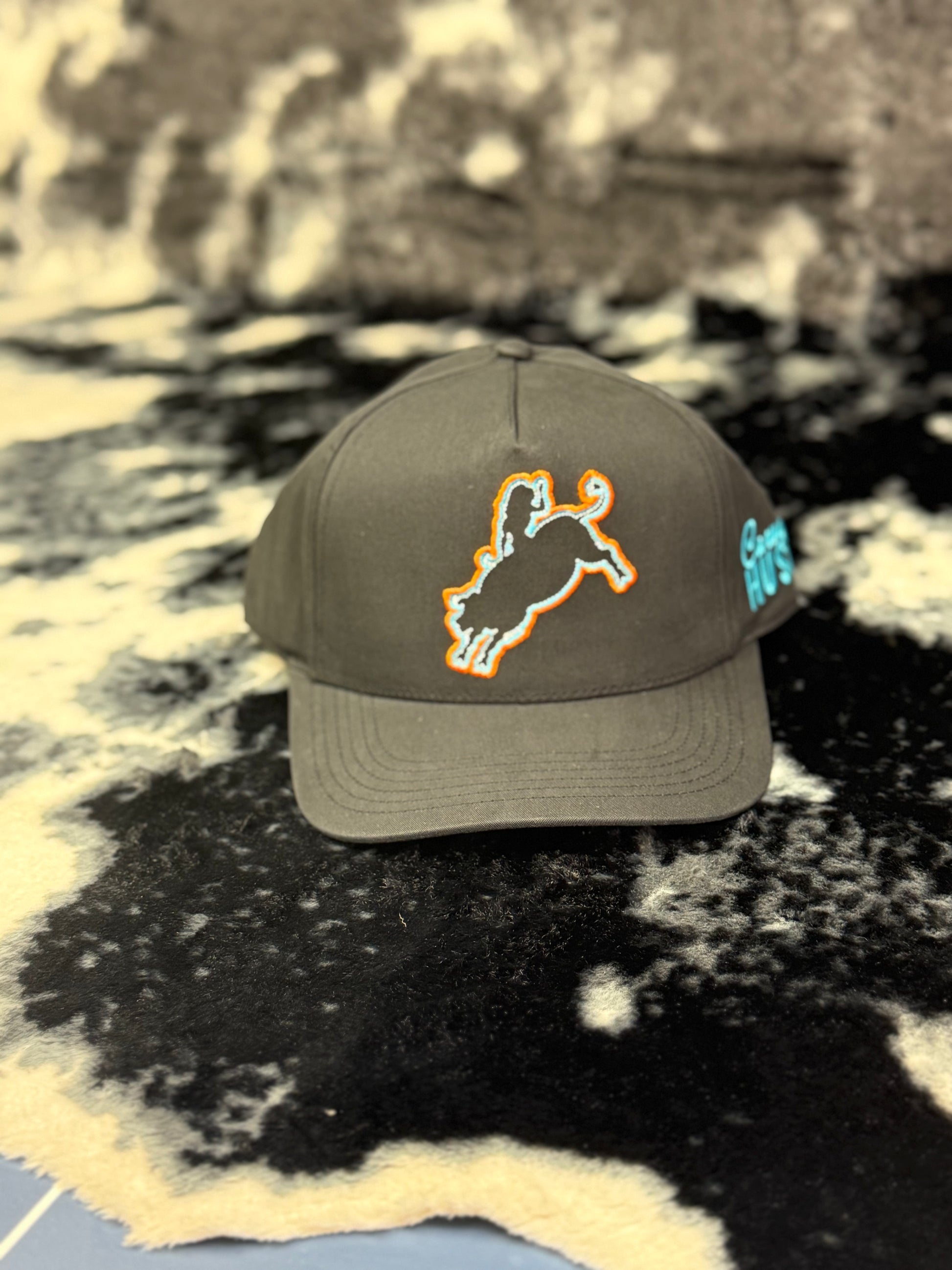 This 6 panel hat has the switched outline of our logo on a simple black hat. The blue logo pops on the side and it has an adjustable back to fit most!